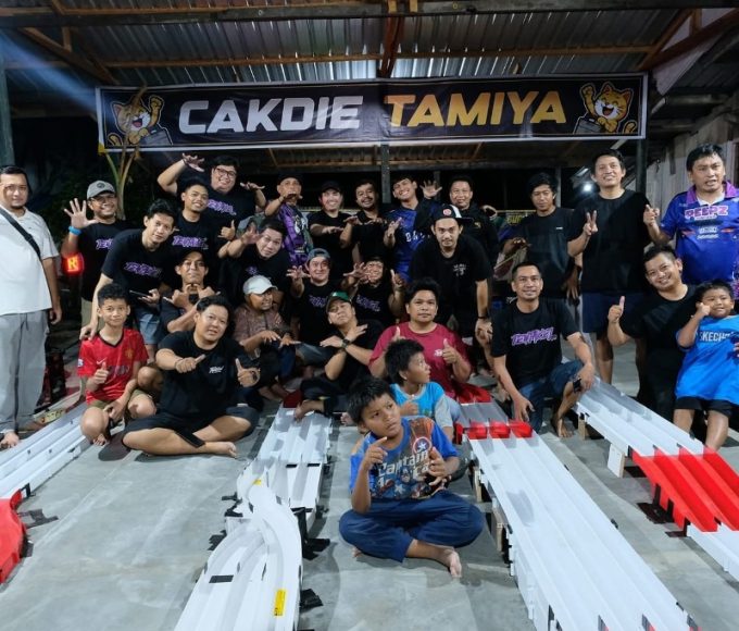 BONTANG. Suara deru mesin mini 4WD terdengar riuh di lintasan Cakdie Tamiya,...