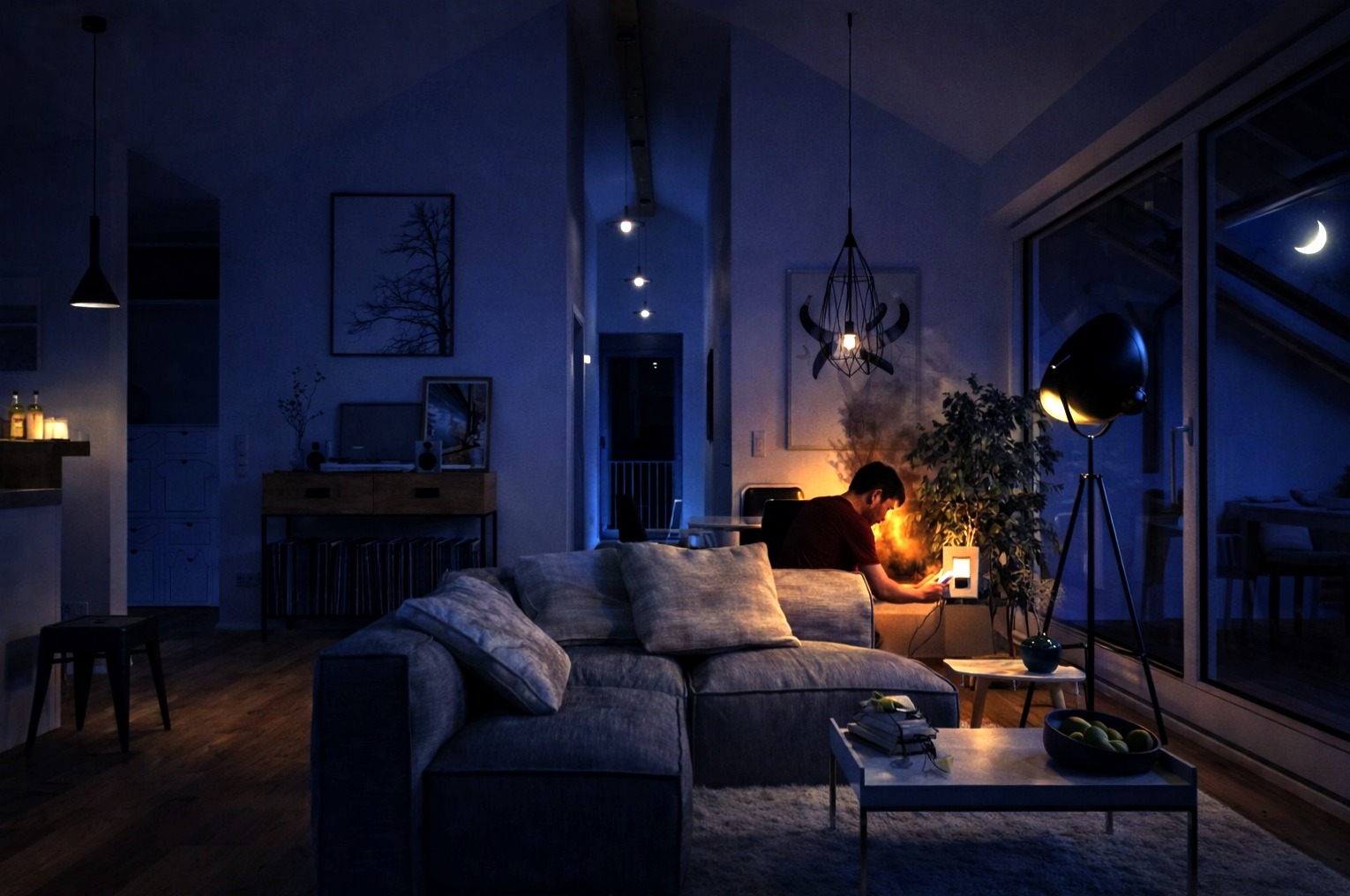Ilustrasi penggunaan listrik secara tepat guna di malam hari (FOTO: AI Generated)