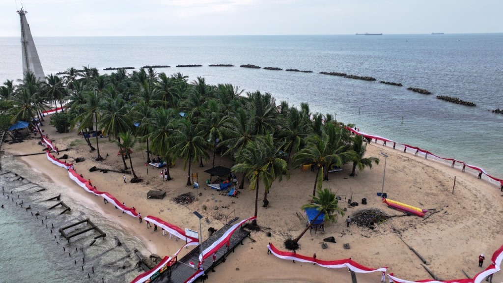 Bendera merah putih dikibarkan mengeliling pulau beras basah (FOTO: Sastro/Prokompim)