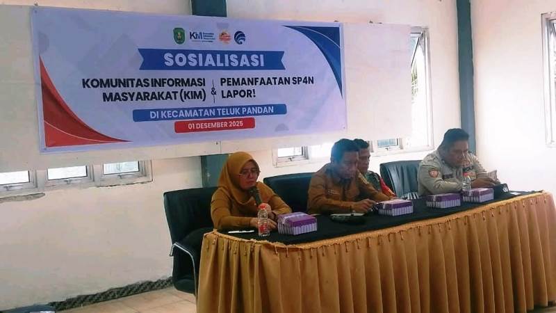 SANGATTA. Dinas Komunikasi, Informatika, Statistik, dan Persandian (Diskominfo Staper) Kutai Timur (Kutim) menggelar Sosialisasi Komunitas Informasi Masyarakat (KIM) dan pemanfaatan Sistem Pengelolaan Pengaduan Pelayanan Publik Nasional – Layanan Aspirasi dan Pengaduan Online Rakyat (SP4N LAPOR), di ruang BPU Kecamatan Teluk Pandan, Senin (1/12/2025).