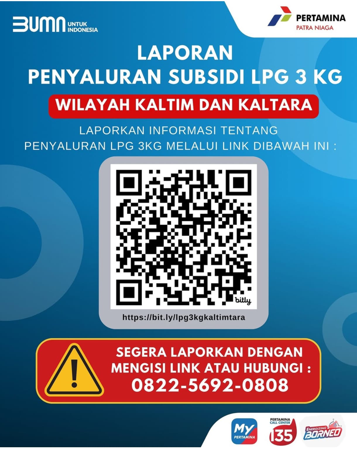 Masyarakat bisa mengakses jalur aduan dengan memindai QR Code yang tersedia atau mengunjungi tautan: https://bit.ly/lpg3kgkaltimtara.