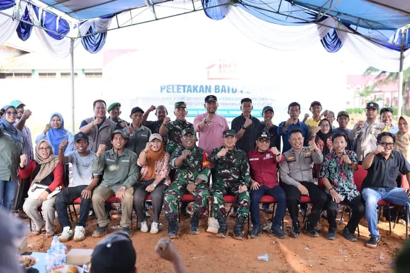 BONTANG. Dandim 0908/Bontang, Letkol Inf Aryo Bagus Daryanto melaksanakan peletakan batu pertama pembangunan Fisik 80.000 Gerai, Pergudangan dan Kelengkapan Koperasi Desa / Kelurahan merah putih di Desa Sidomulyo , Kecamatan Anggana, Kabupaten Kutai Kartanegara, Jumat (17/10/2025).