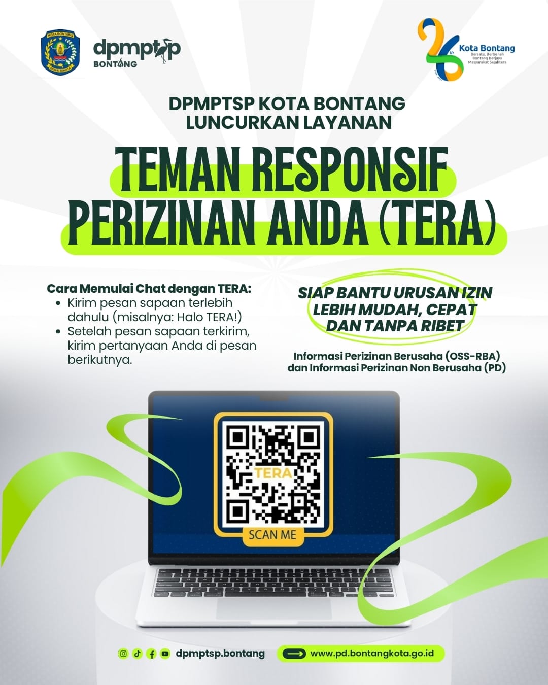 Salah satunya TERA (Teman Responsif Perizinan Anda), sebuah layanan chatbot berbasis Artificial Intelligence (AI) yang dapat diakses melalui aplikasi WhatsApp.