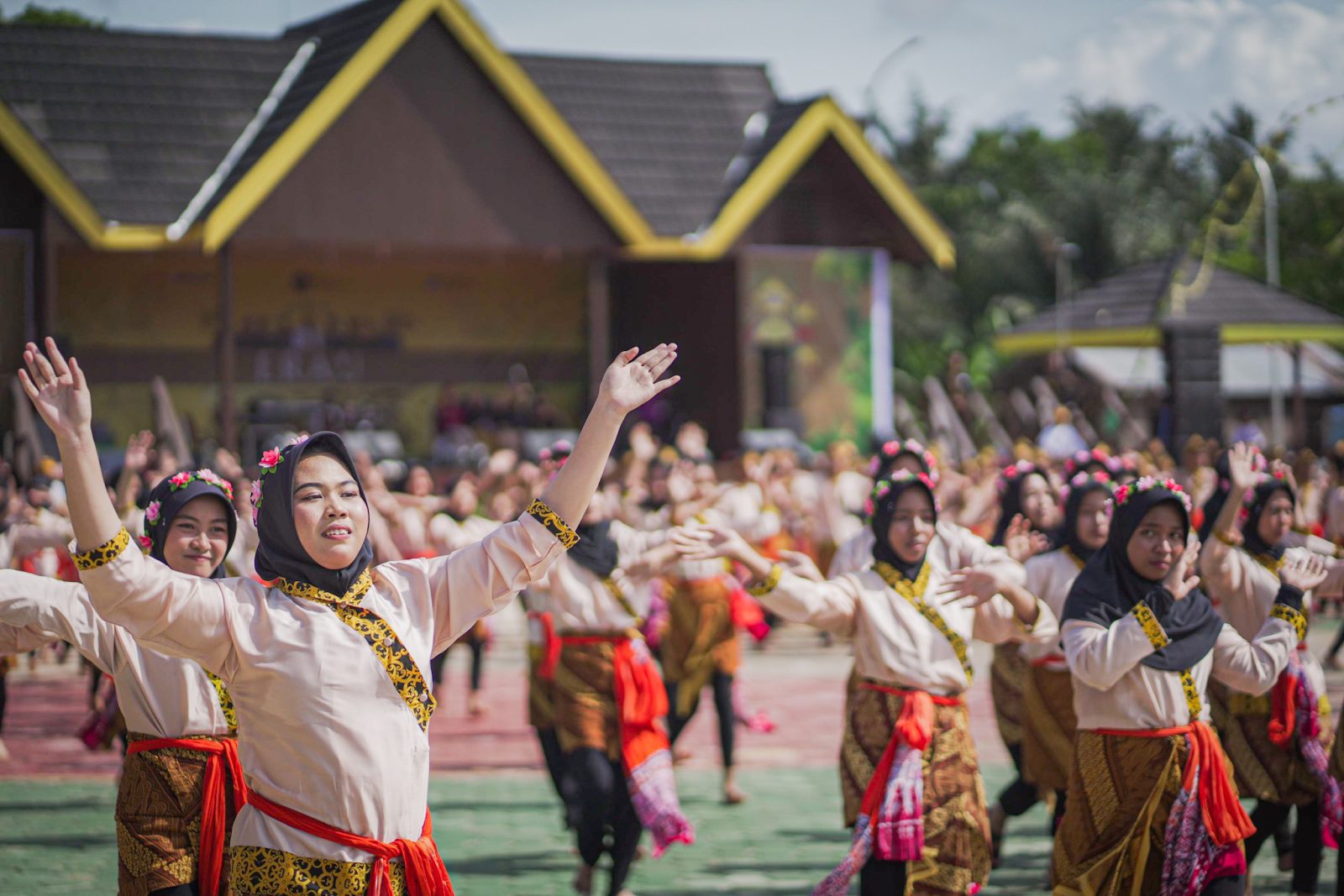 Ratusan penari jepen dari pelajar Kota Bontang ikut meriahkan Festival Erau Pelas Benua Guntung 2024. (Foto: Indra Gunawan Sendawar).