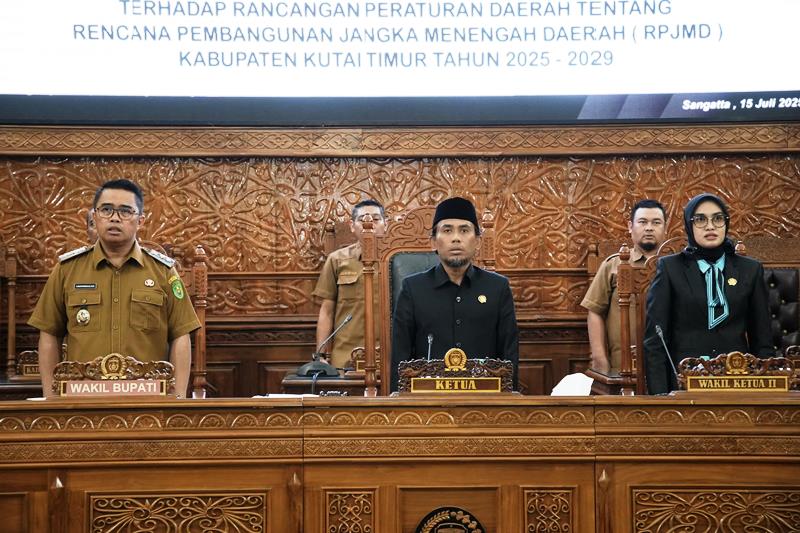 SANGATTA. Rapat Paripurna ke-XLVII DPRD Kutai Timur (Kutim), Selasa (15/7/2025), bukan sekadar sesi formal legislasi. Di balik podium megah ruang sidang utama DPRD, seluruh fraksi menyatakan dukungan terhadap Rancangan Peraturan Daerah (Raperda) tentang Rencana Pembangunan Jangka Menengah Daerah (RPJMD) Kutim 2025-2029. Namun dukungan itu tidak kosong, setiap fraksi datang membawa catatan kritis, saran tajam, hingga peringatan yang bisa menjadi kompas atau bahkan alarm dini bagi pemerintah.