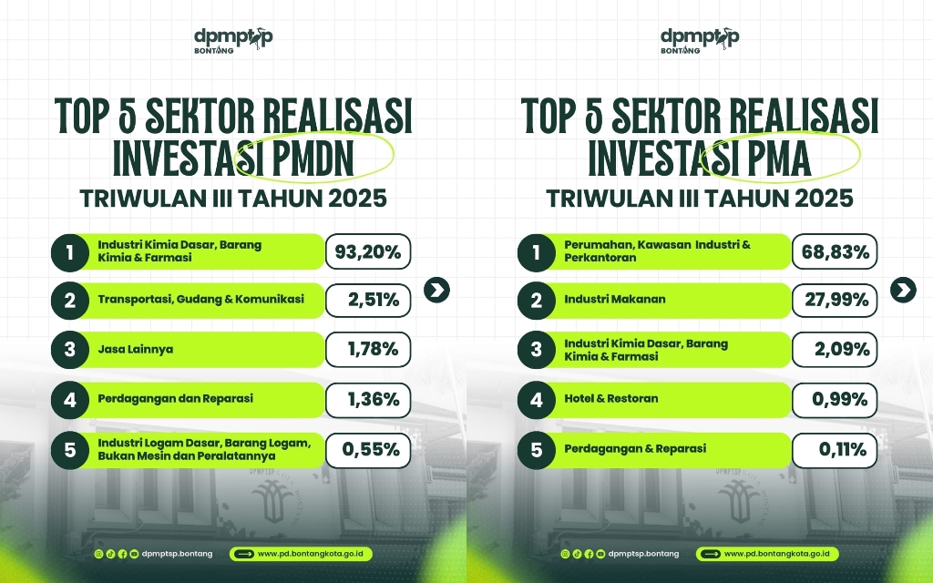 Lima sektor penyumbang investasi terbesar PMDN dan PMA di bontang pada triwulan III 2025 (FOTO: Doc. DPMTSP)