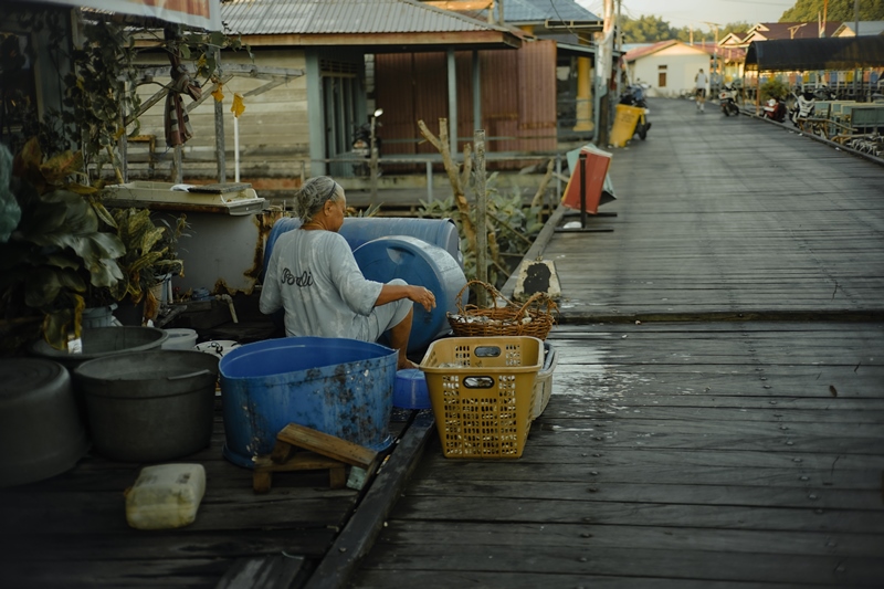 Mentari pagi mulai menampakkan sinarnya di balik horizon, menyapu langit Bontang Kuala dengan semburat jingga keemasan. Rumah-rumah panggung berdiri tenang di atas permukaan air yang berkilau, memantulkan warna langit yang mempesona. Udara pagi yang sejuk menyelimuti kawasan pesisir ini, menghadirkan suasana damai dan hening. Awan tipis melayang perlahan, seolah enggan mengganggu keindahan pagi yang syahdu. Sudut-sudut Bontang Kuala memancarkan pesona tersendiri saat surya menyingsing, menyajikan lukisan alam yang memukau mata.