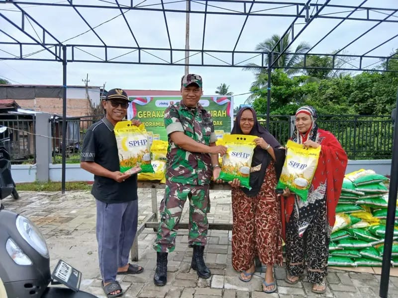 BONTANG. Kodim 0908/Bontang melalui Babinsa Koramil 0908-02/Muara Badak mengelar gerakan pangan murah di Desa Gas Alam Badak 1, kecamatan Muara Badak, Kabupaten Kutai Kartanegara, Rabu (17/09/2025).