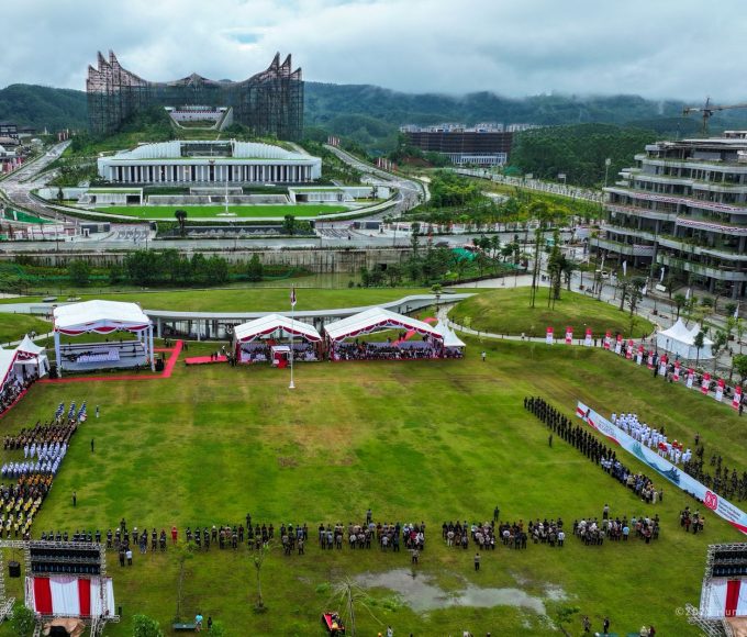Suasana yang sakral upacara penurunan bendera dalam rangka HUT RI ke-80 di IKN pada Minggu (17/08/2025). (FOTO: Humas IKN) NUSANTARA. Upacara Penurunan Bendera...