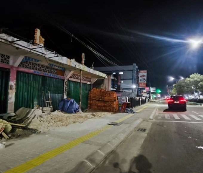 Salah satu bangunan yang tidak sesuai Garis Sempadan Bangunan (GSB) dan masuk hingga ke Jalan R. Suprapto. (FOTO: Wi/narasipedia.net) BONTANG. Dinas Penanaman Modal...
