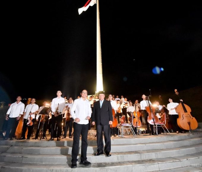 Kepala Otorita IKN, Basuki Hadimuljono, bersama seluruh pemusik Twilite Orchestra dipimpin oleh Addie MS yang turut menambah kekhidmatan Apel. (FOTO: Humas IKN) NUSANTARA....