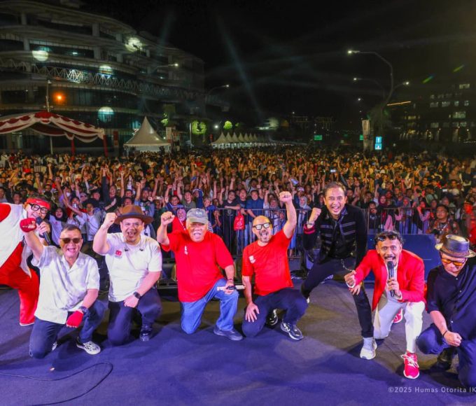 Foto bersama Kepala Otorita IKN, Kepala Otorita IKN, Dr. (H.C.) Ir. H. M. Basuki Hadimuljono, M.Sc., Ph.D., band Padi Reborn dan masyarakat pengunjung...