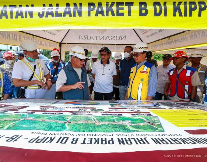 NUSANTARA. Kepala Otorita Ibu Kota Nusantara (IKN), Basuki Hadimuljono, meninjau langsung pembangunan jalan di Kawasan Inti Pusat Pemerintahan (KIPP) 1B dan 1C, pada...