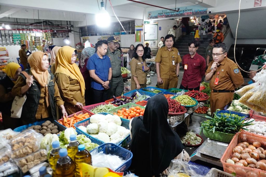 BONTANG. Dinas Koperasi, Usaha Mikro, Perindustrian dan Perdagangan (DKUMPP) Kota Bontang bersama Tim Pengendalian Inflasi Daerah (TPID) melakukan monitoring harga dan ketersediaan bahan pokok di Pasar Taman Rawa Indah, Selasa (10/3/2026). Kegiatan ini dilakukan sebagai langkah antisipasi menjelang Hari Besar Keagamaan Nasional (HBKN) Idul Fitri 1447 H / 2026 M.