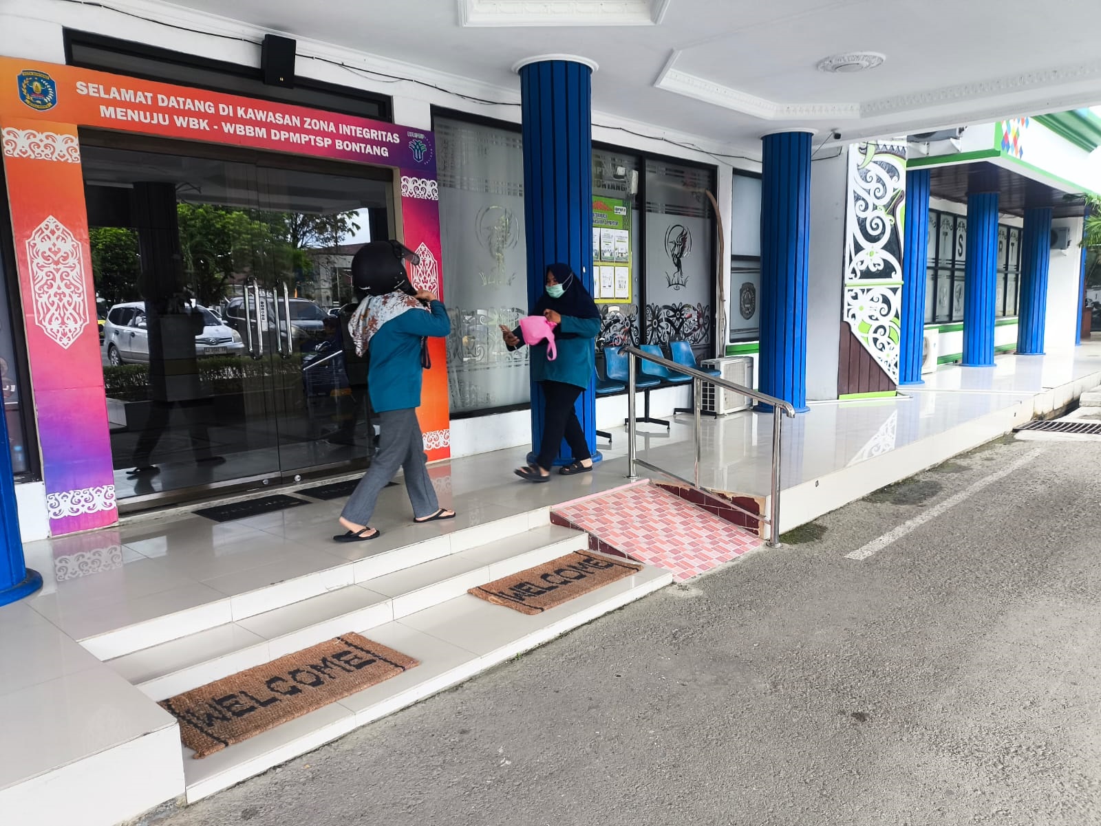 Jalur disabilitas dan lansia yang disediakan DPMPTSP tepat di depan pintu masuk kantor pelayanan di Jalan Awang Long, Kelurahan Bontang Baru. (FOTO: Wi/narasipedia.net)