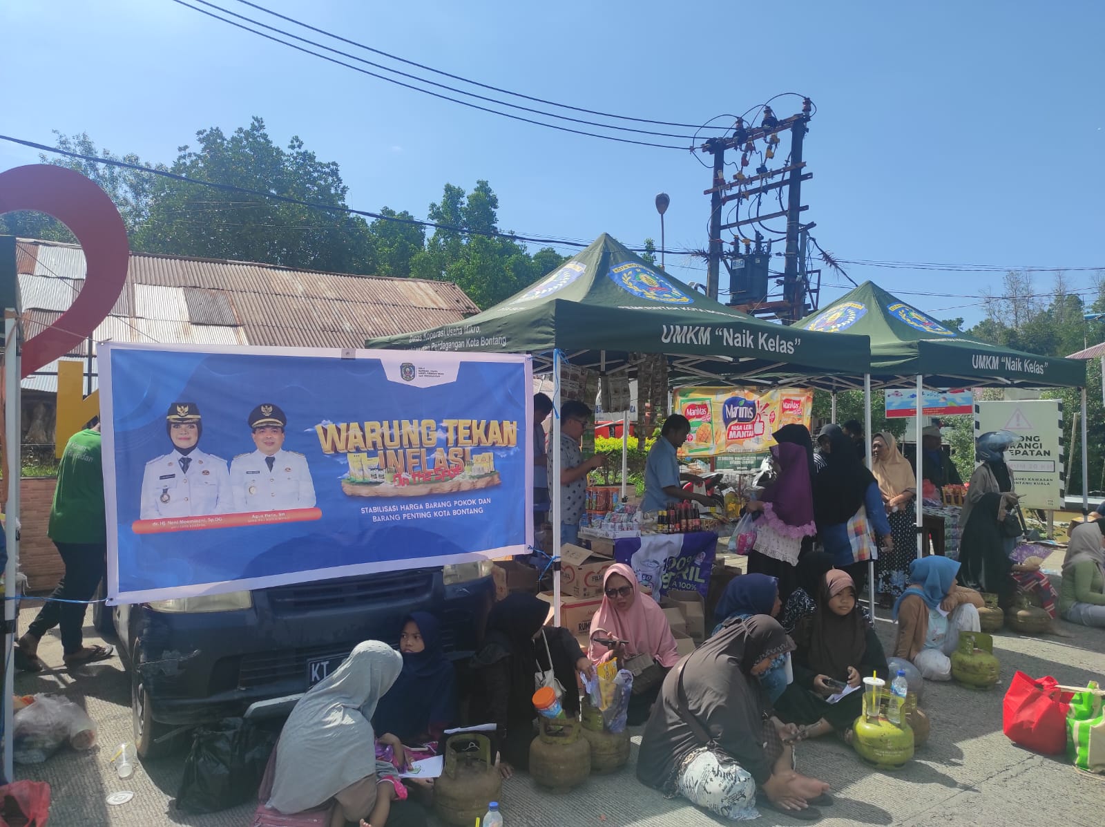 BONTANG. Program Warung Tekan Inflasi (Wartek-In) on the spot garapan Dinas Koperasi, Usaha Mikro, Perindustrian dan Perdagangan (DKUMPP) sukes digelar di Terminal Kelurahan Bontang Kuala, Kamis (5/6/2025).