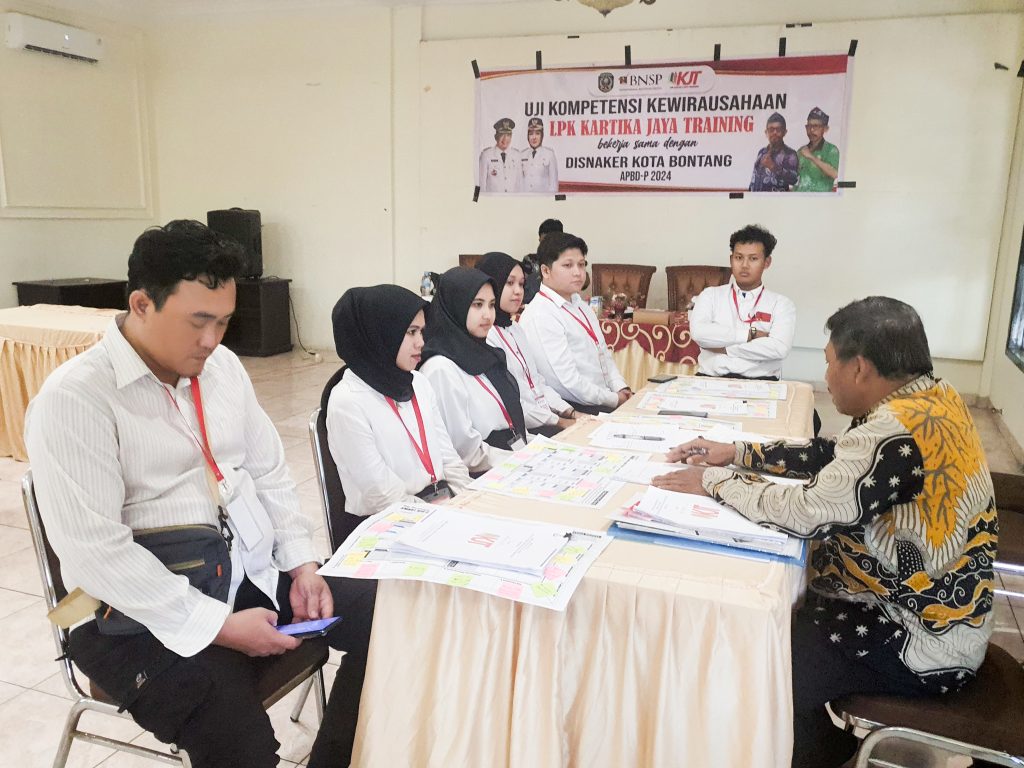 LPK Kartika Jaya Training bekerja sama dengan Dinas Ketenagakerjaan (Disnaker) Kota Bontang menggelar pelatihan kewirausahaan yang dilanjutkan dengan uji kompetensi bersertifikasi Badan Nasional Sertifikasi Profesi (BNSP).