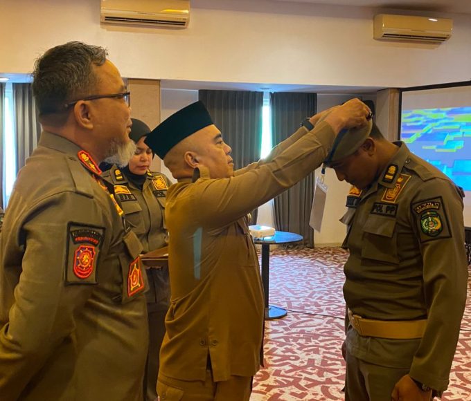 Kepala Satpol PP Kukar, Arfan Boma, memberikan sambutannya pada  saat membuka pelatihan...